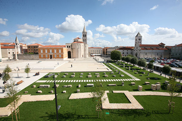 Zadar, a town at the centre of northern Adriatic coast, is a true treasure trove of archaeological Roman, Medieval and Renaissance monumental heritage, as well as numerous modern architectural achievements.